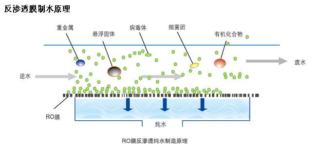 當“臟”水壓在膜上時,98%或更多的溶解礦物質(離子)殘留在膜的“臟”側,因此與通過膜的“清潔”水分離。